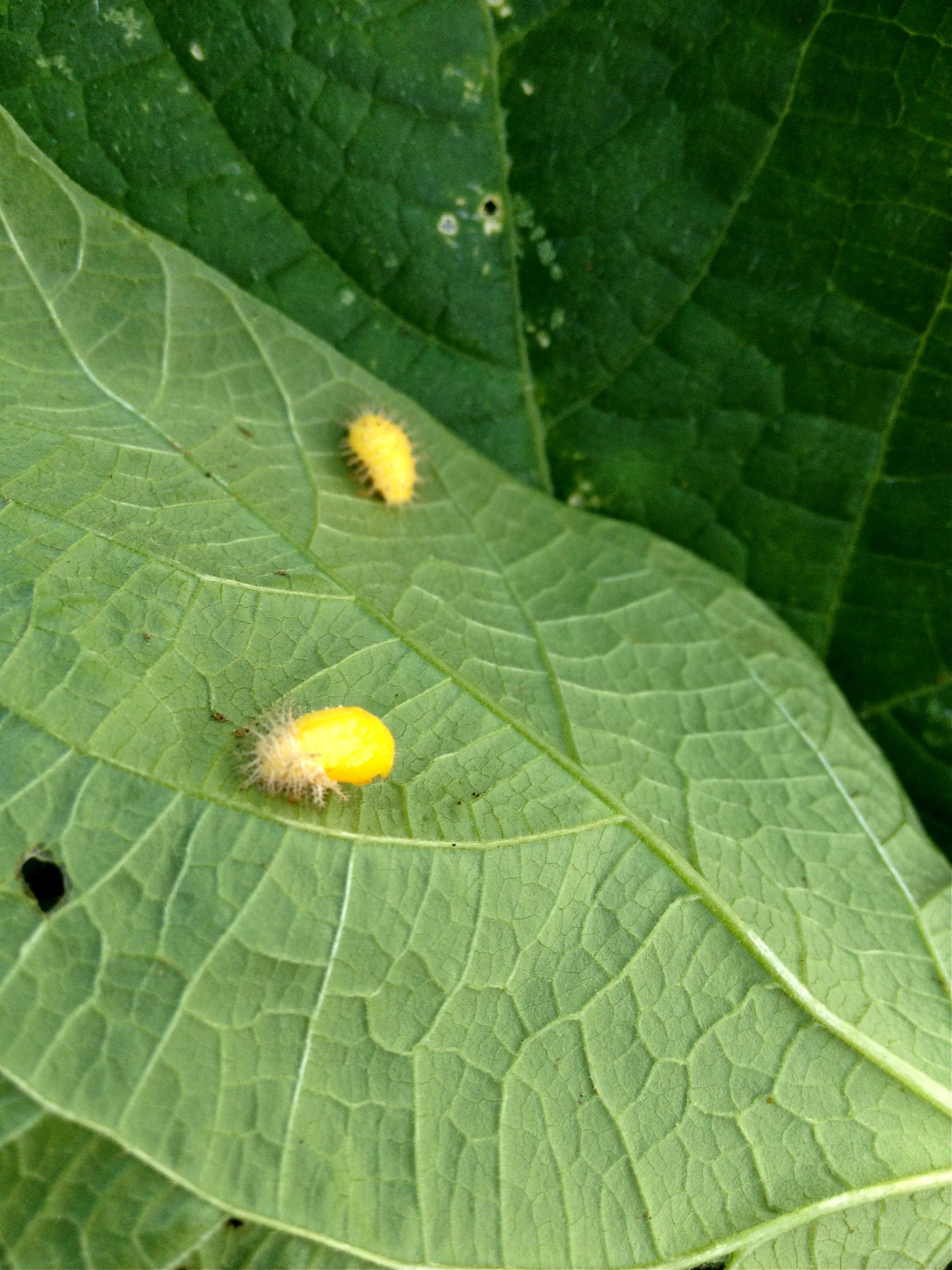 This. This is what’s causing our bean plants to die a painful death. I have no idea what these are, but they’re eating my leaves down to the veins.
