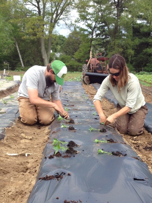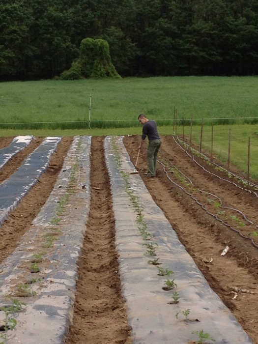 I’ve taken to volunteering Saturday afternoons at The Work Farm in order to glean experience from the farm manager, Susan. We spent the afternoon putting in tomato and pepper plants and laying plastic down.