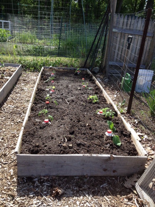 All in all, things could be a lot worse. I’m heading to the garden tonight to put a scoop of worm castings and crushed egg shells into each milk jug. This way, the tomatoes get a boost of fertilizer and calcium with every watering.