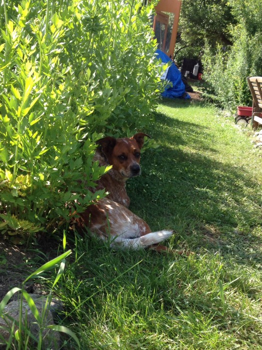 Not that I blame her for taking refuge in the shade from the lovage. It’s too hot to be wearing a fur coat.