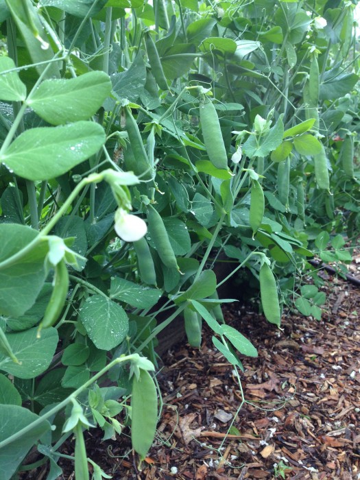 I haven’t been able to make it to the garden as much as I’d like. This is iffy when it comes to gardening — I can’t be on the ground to monitor things. Things like chasing off chipmunks, or pulling the weeds as they poke their heads out of the ground. When I arrived at the garden this weekend, though, I was pleasantly surprised. It looks as though the rainy week helped me out a ton. My broccoli thought maybe it would like to spring back. The spinach took off, despite the leaf miner. The tomatoes seem to be holding their own. The curly endive is delicious, and WE HAVE PEAS.