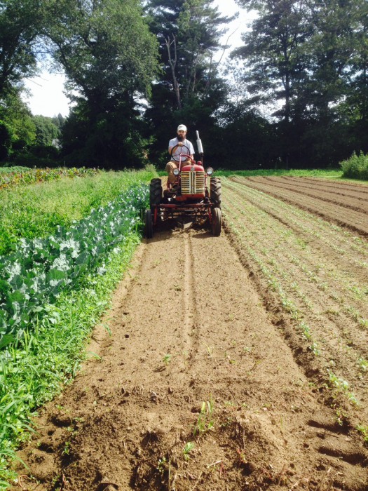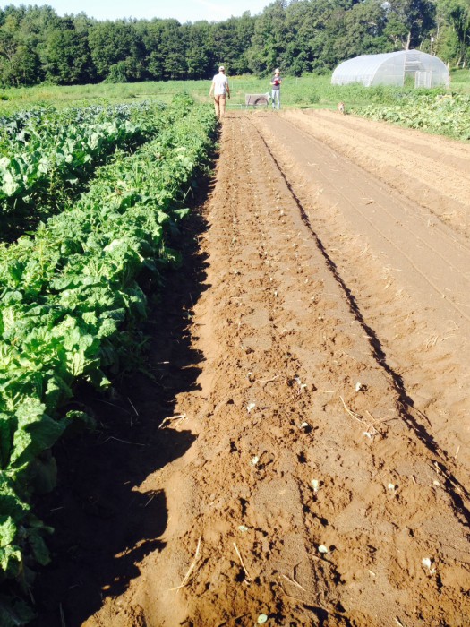 I joined Seth’s crew, along with a volunteer, an intern, and two work-for-shares. The process goes something like this: Use the tractor to form beds, then use the dibbler to dibble holes in the ground. Fertilize your seedlings by submerging them in fish fertilizer (not pictured because it looks as bad as it smells) then lay out a seedling at every hole you want planted. Plant the seedlings up to their first sets of leaves. Walk away like a champ.