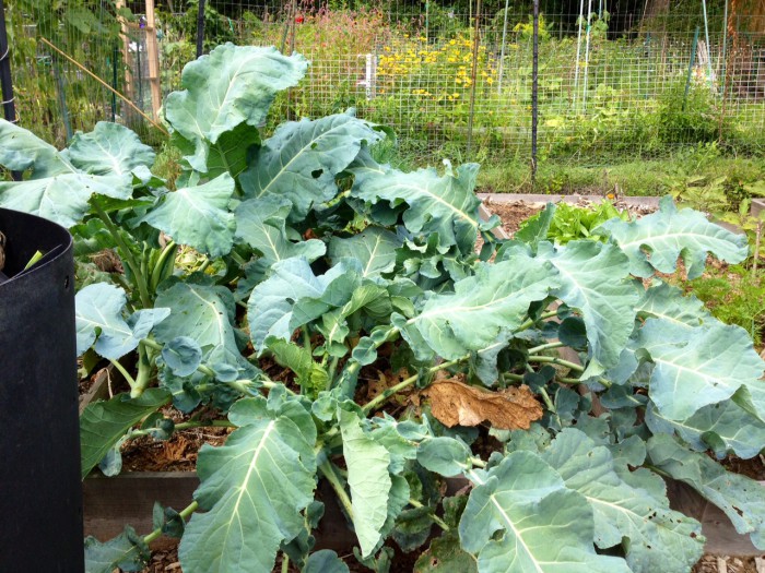Me? I’m pinning my hopes on the broccoli. It’s going gangbusters. Still no heads yet, but i have faith that we might get some “early” broccoli (these plants were supposed to give us a spring harvest, but they were nibbled to nubbins). I put in a few seeds for late broccoli too, and have reduced the incidences of rabbit invasion by securing our gate a bit better. Maybe all this will come to something. And in the meantime, I’ll eat my way through the 6 lbs. of green beans I picked this week and beg Seth to bring home more kale, cabbage, and cauliflower. Mm mmm.