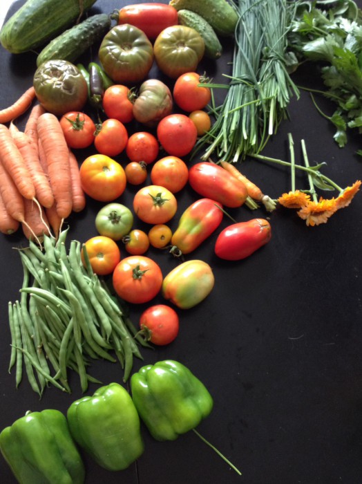 I love this time of year. The garden outperforms itself with tomatoes and green beans. I’ve been getting a couple of eggplants, dozens of cucumbers, and several handfuls of jalapenos. Even the endive has held on. Enough food, in short, to make me love summer.