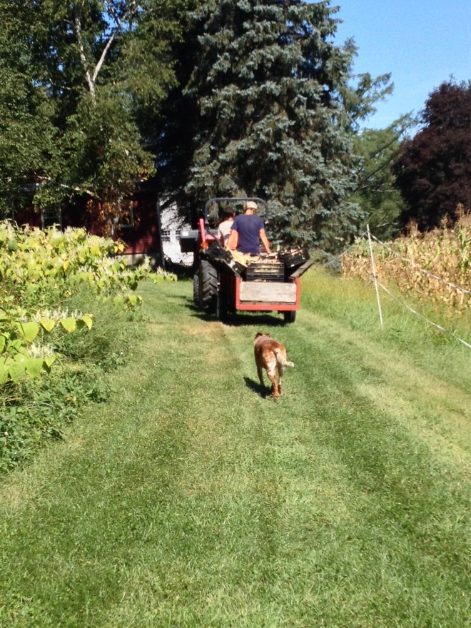 There was never a question over whether or not we’d get the surgery. Lily is a part of our family, and a big part of our farm life. She’s the reason why I began thinking about a farm in the first place, when I was at my sickest with migraines and sick building syndrome, and it was all I could do to walk a mile with her across the fields of Wagon Hill park. I felt my best outside. She did too. And five years later, she became Seth’s farm buddy, trotting by his side in the fields, guarding against voles and bunnies, greeting guests as they drove in.