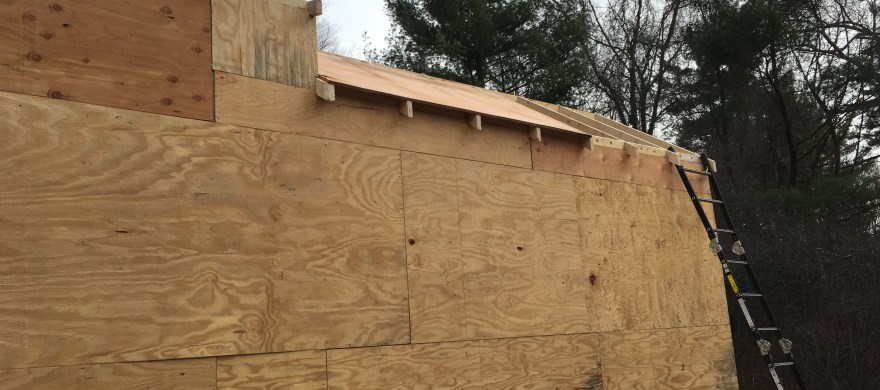 Thanks to Seth’s hard work over the last week or so, the roof deck of the tiny house is in place just in time for this week’s rotten weather. We’re still keeping the tarp over the everything to protect the plywood from moisture as much as possible, but we’re in decent shape for snow. Unfortunately, we managed to not take any pictures of the house with the entire roof on, so you’ll have to believe us when we say it looks pretty darn good.
