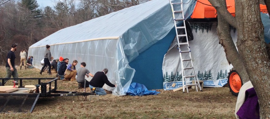 We went to a greenhouse skinning operation about a week ago, full of farmers helping the farmers of Upswing, owned by Brittany and Kevin, as they venture into their first season on new land. As always, when farm folk get together talk turns to joking about how many turnips are left in the root cellar (tons!), telling how strange it is to write yet another yearly post about CSA sign-up day, lamenting the dearth of experienced farm help, and sharing how unprepared they are for March 1, the date to seed onions in flats in greenhouses.