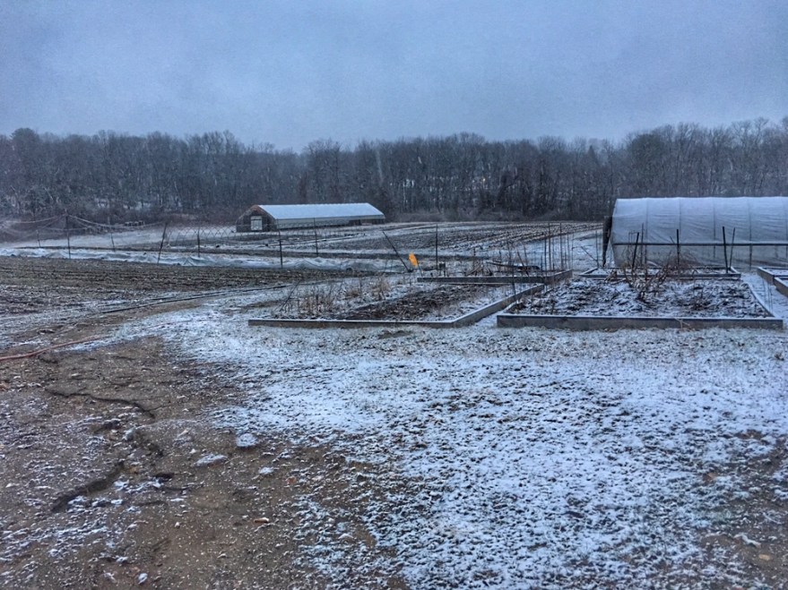 It was 71 degrees here yesterday, sunny and mild and springlike a good two months early. I felt the blood moving in my veins. I know Seth felt it too because when I came upon him and our assistant farm manager at lunchtime, Seth was full of giddy humor, in his t-shirt, practically bouncing on the balls of his feet in his happiness to be outside.