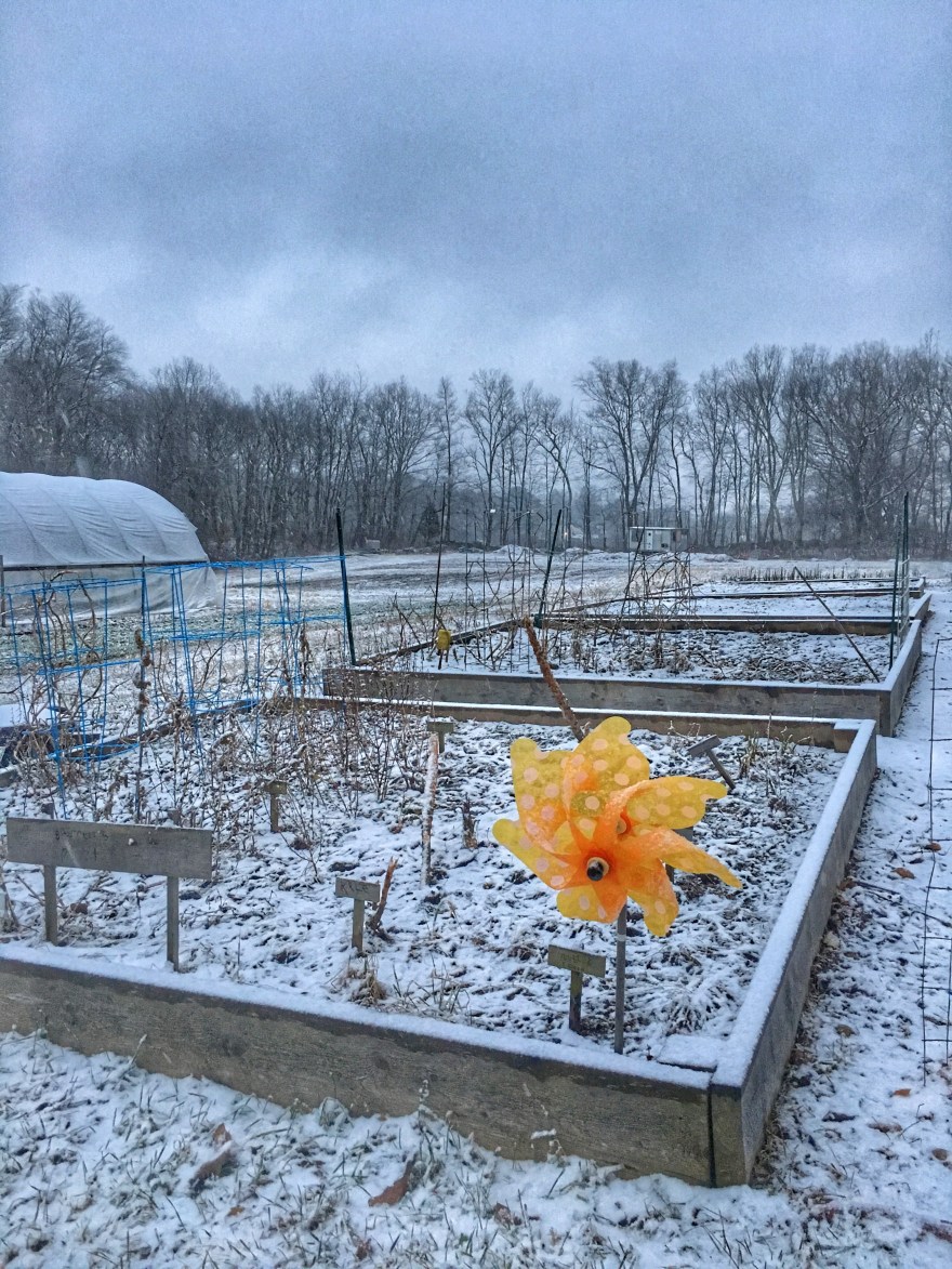 Mother Nature listened, I guess, because it’s snowing now. And settling down in a chair with my knitting for company sounds about my speed. If only the baby wanted to settle down too.