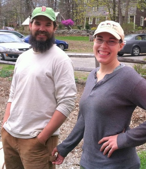Hello! Here we are, Christine and Seth at Seth’s work farm, with Lily somewhere in the farm fields. The three of us are on our way to life in a tiny house on our own organic vegetable farm that we call Earth Morning. We named it after the Latin roots of our married name. When we picked our new last name in 2009, we didn’t know we were going to farm together, but after giving it a try through Seth’s job as the Assistant Grower at a local vegetable farm, we’re sold.