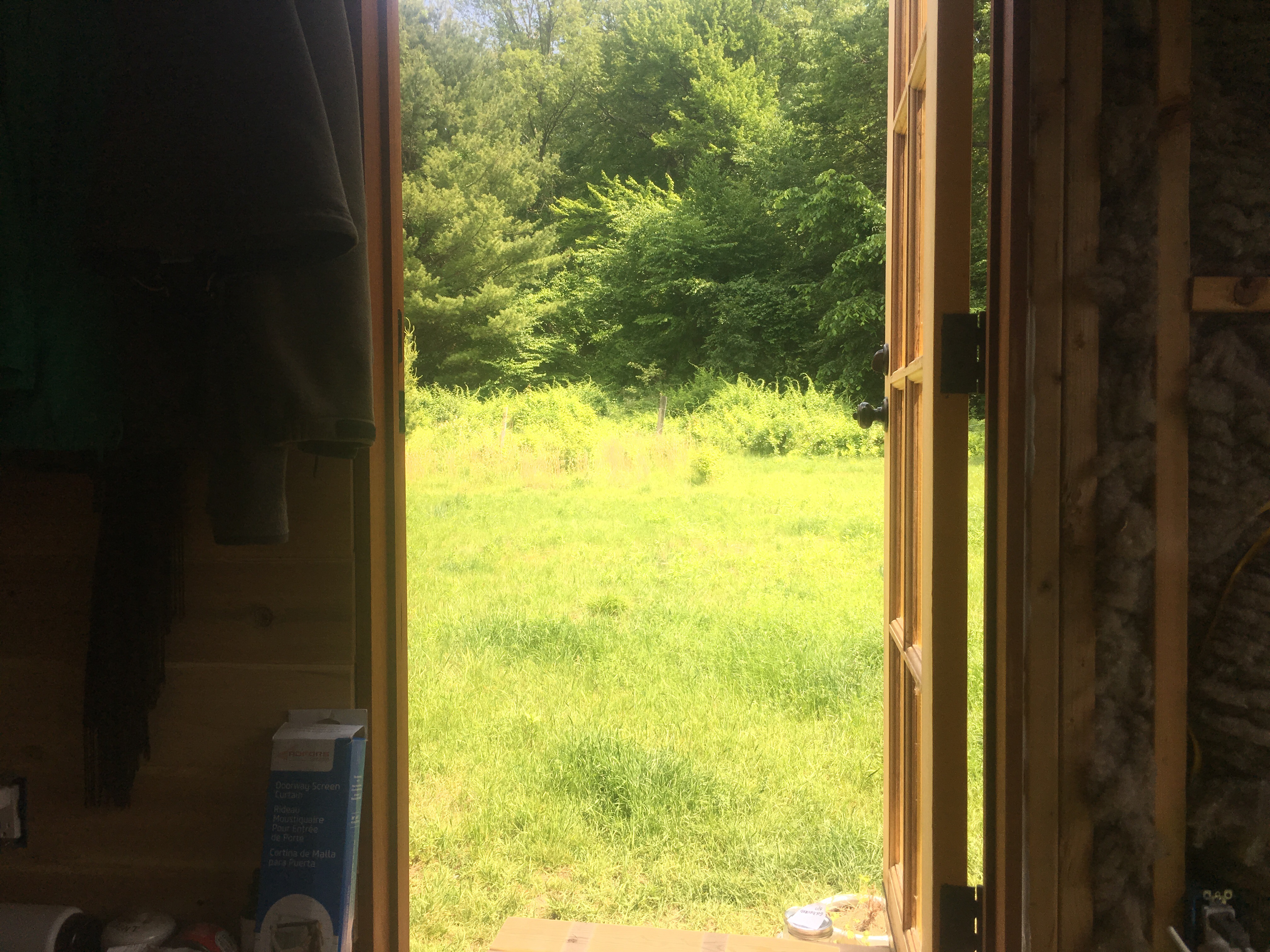 The difference it made to the inside of the house was noticeable immediately. Stepping into the house at mid-morning this past weekend, we realized the house felt stuffy. And this with a gaping hole where the door goes! No more airflow through the cracks between our sheathing. I’d call that a success.